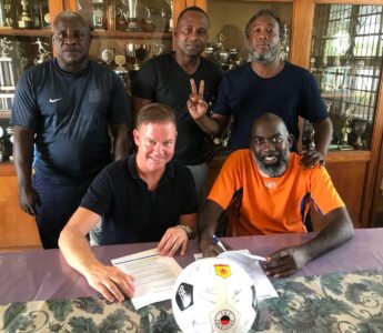 Demt-flex sponsort voetbalclub Undeba op het Caribische Curaçao. We gaan deze club bijstaan om kampioen te worden en te blijven. Op de foto het tekenmoment in het bijzijn van het bestuur van Undeba.